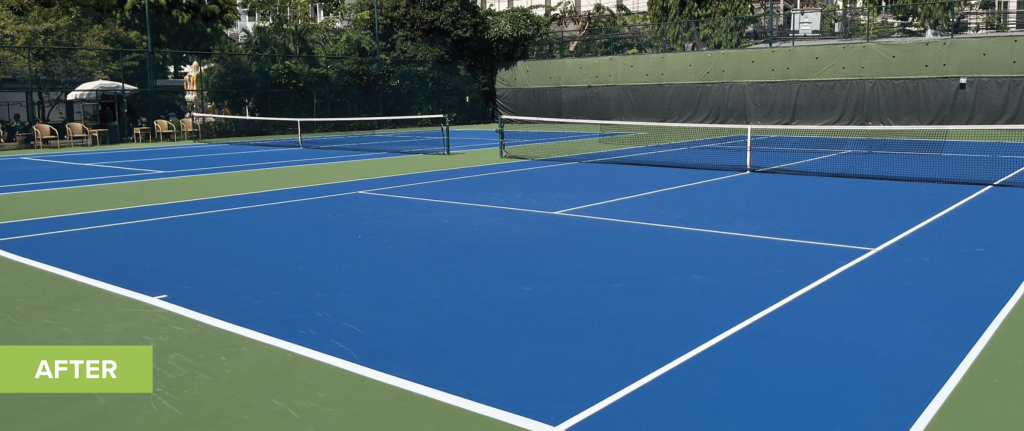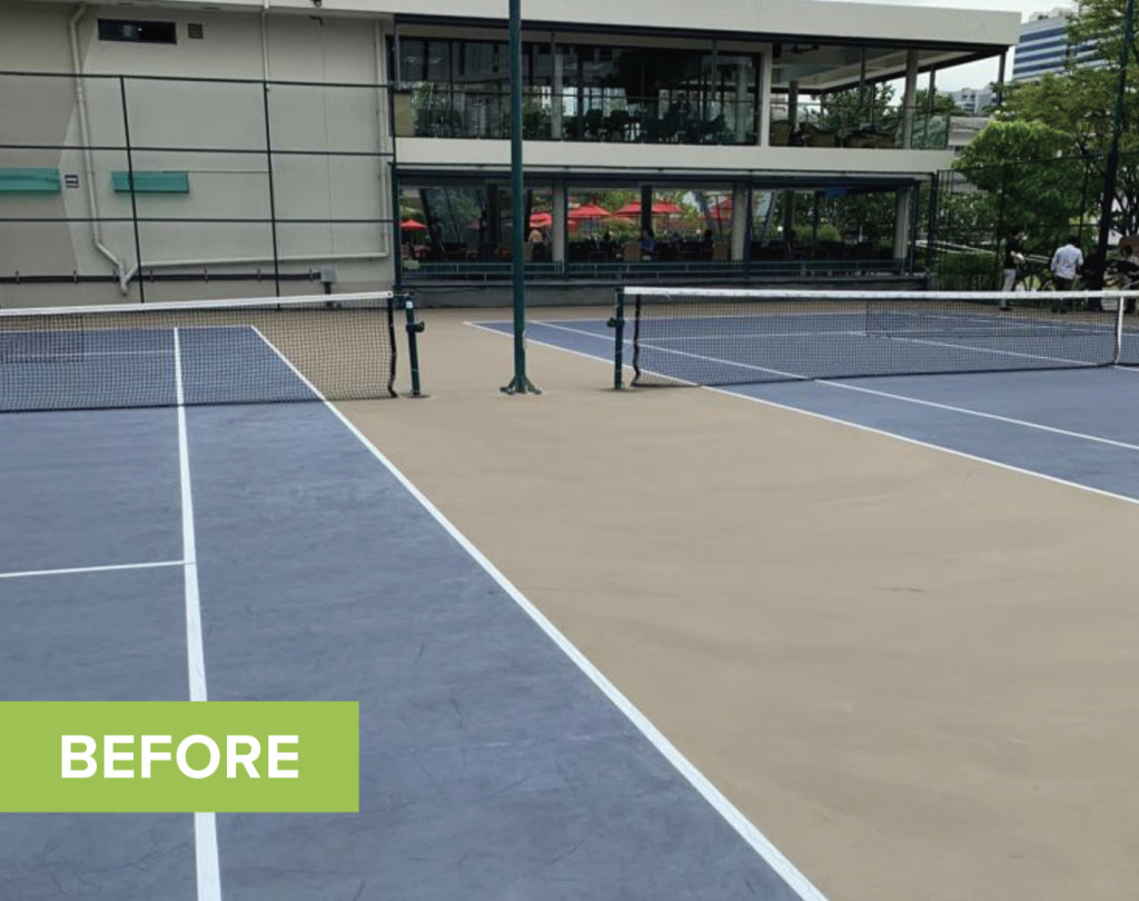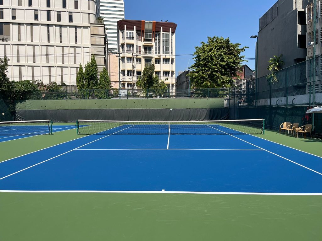The British Club Bangkok’s four hard tennis courts were due for routine recoating after years of reliable service from their existing Plexipave surface. With Thailand’s intense tropical climate creating challenging playing conditions, the club sought to upgrade to enhanced heat-reduction technology while maintaining proven performance standards for their Tennis Section members.