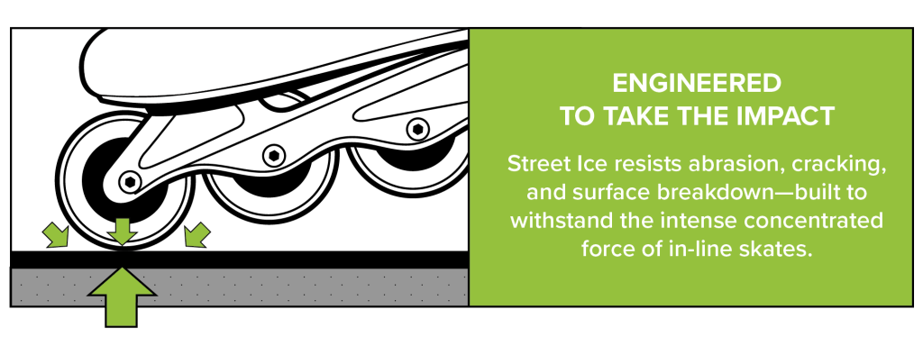 Street Ice® delivers the smooth glide and resilient strength that rollerbladers, skaters or inline athletes demand. Engineered with durability and playability in mind, the new and improved Street Ice formula provides 50% greater abrasion resistance than previous versions. Developed to withstand the incredible impact and pressure associated with inline or street hockey use.