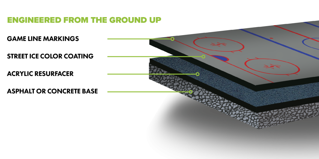 While many in-line skating surfaces use general-purpose sport court colors, Street Ice® stands apart with a palette designed specifically for the demands of in-line hockey. Our five high-contrast, visually dynamic shades enhance puck and ball visibility, improving player awareness and overall gameplay. These aren’t just bold colors, they’re performance tools.